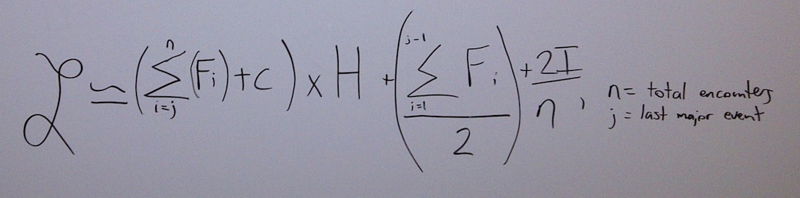 At a first glance this could seem confusing, especially if you’re a stranger to math or physics equations. Once its explained though, its actually very straight forward. In english, this translates to “the attraction is virtually equal to the sum of the total encounters from the last major event multiplied by the impression left plus the level of charm, multiplied by the libido of the other person (H, the hormonal factor), plus the sum of all the encounters up to the last major event divided in half, plus 2 times the outside influences divided by the total number of encounters with the person.” OK, so that may not have been exactly “english”. Lets break it down a bit further..