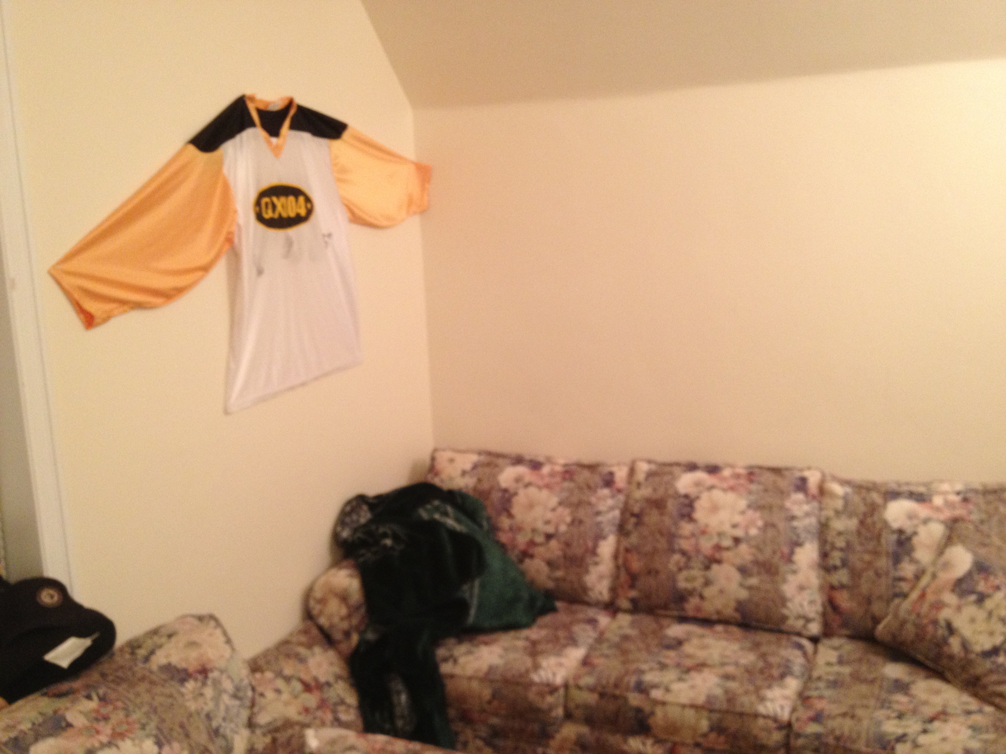 Where every mancave needs at least one jersey pinned up on the wall, not every mancave requires your grandparents old flowery couches – that was my own decision. The jersey hanging above is one that I used when I played in goal for a local radio station fundraiser. I got it signed by the two captains of each team, Dallas Smith and Chad Brownlee! Zach Bogosian of the Winnipeg Jets was there too that day so I weaselled my way into getting his autograph on there too. I’m sneaky like that.