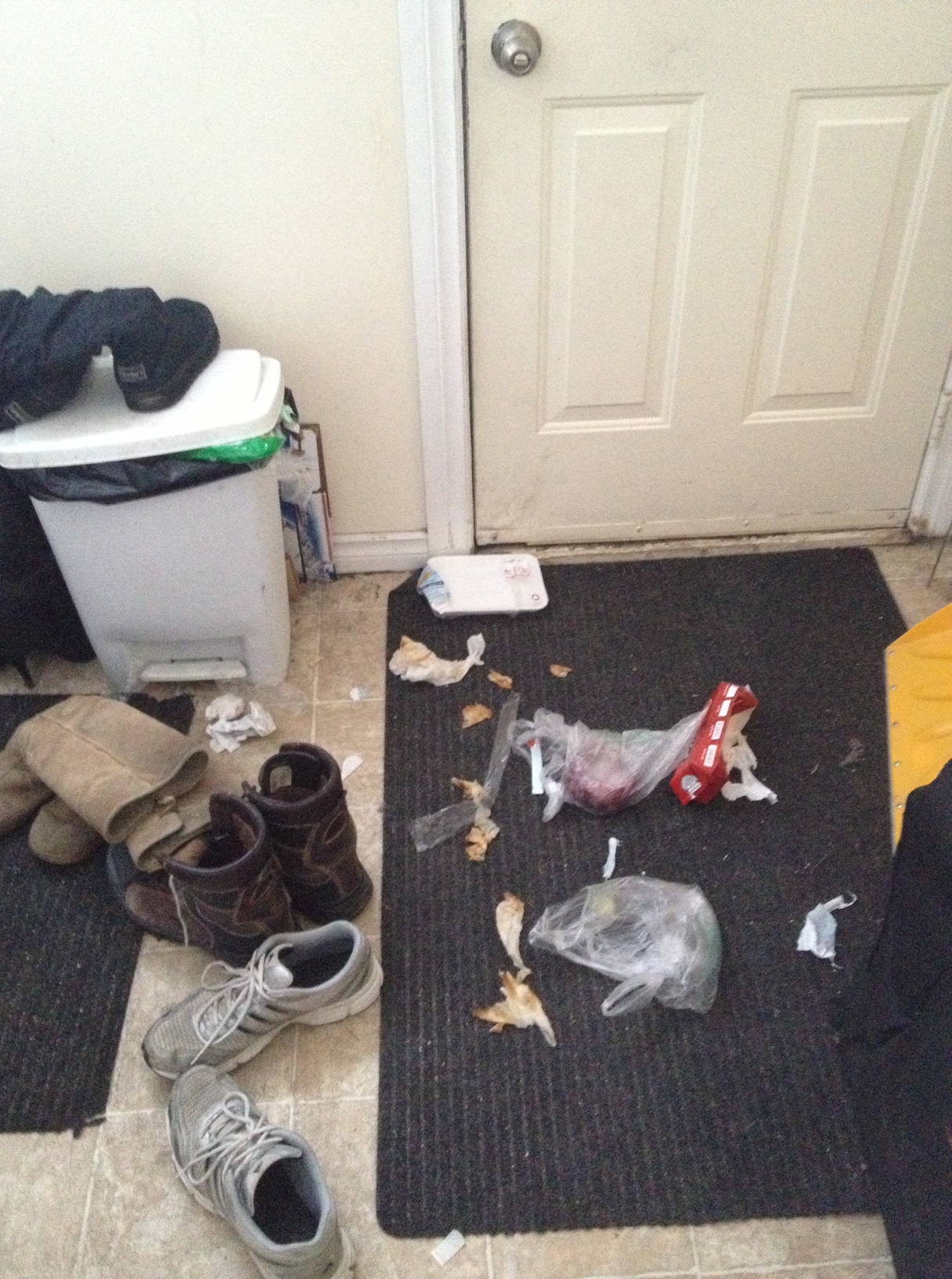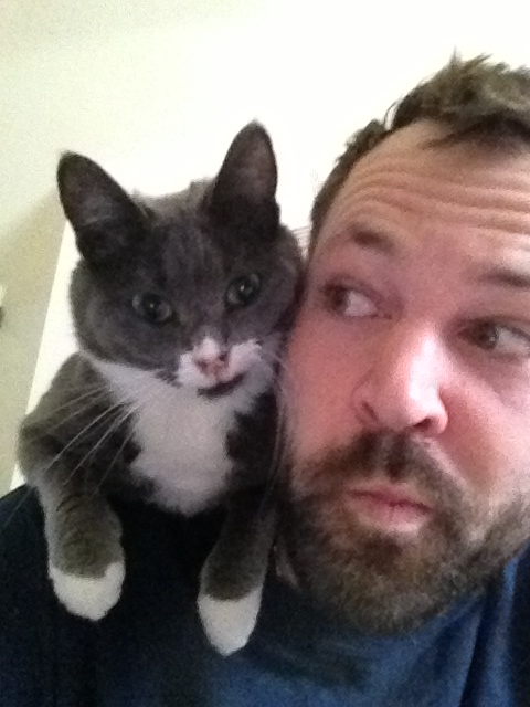 The cat has since forgiven me, and we’re back to being friends. This picture was actually taken while on the toilet…which is now something you can’t un-know. She does this every morning, and I’m pretty sure she thinks she’s a parrot. Don’t be fooled by her cute nature, although I do know she loves me, she’s in tight with the dog and this is just a decoy so he can dig through the garbage.