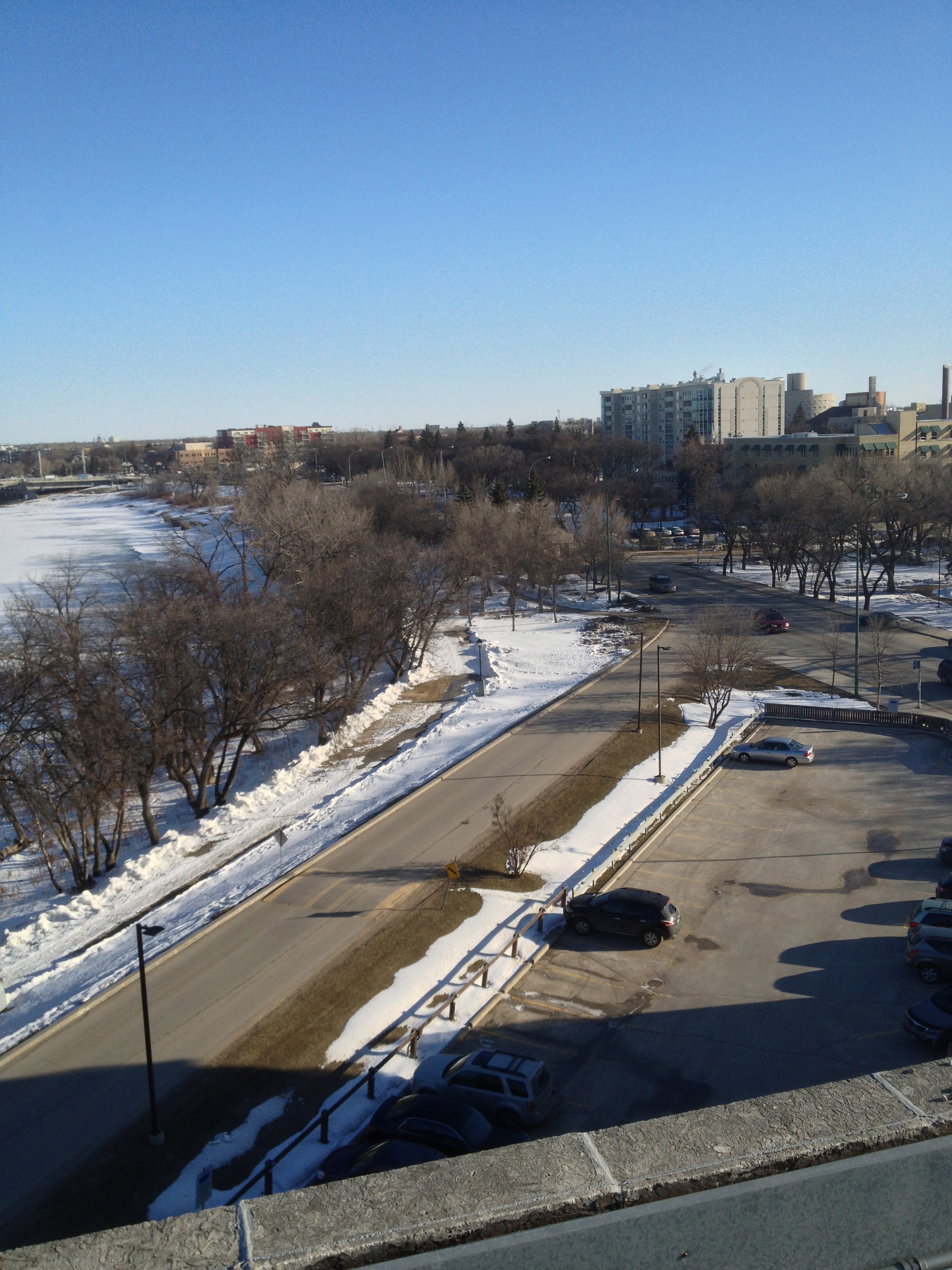This is the “gorgeous” view from the top of the hospital I was working at the other day, installing a new security camera.  Where the view is nice on the rooftop of a 5 storey building, coupled with the comfort of knowing if I fall off I’ll go straight through the glass of the atrium and land on an operating table, the picture does not do this scene justice – what you CAN’T see is the -30C temperature and the howling wind.  This is a prime example of crap at work that I’m not going to miss.  Sure summer weather would make such jobs bliss, but rarely do they send you on a comforting rooftop adventure on a lovely July afternoon and instead deploy you into damp cold crawlspaces to pull wire.  So long installations, hello homework.