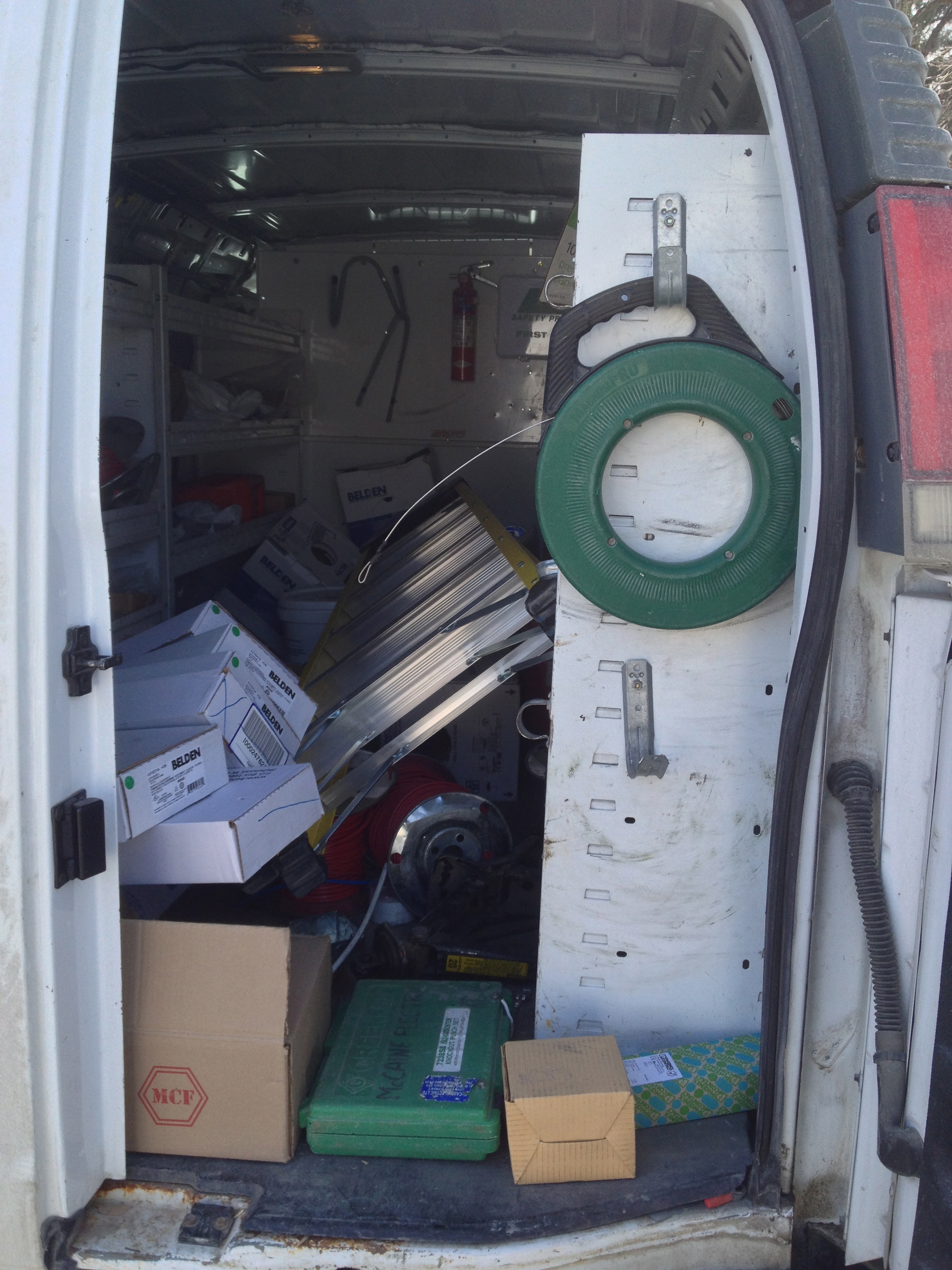 What you’re looking at is my mobile office…on wheels.  Sure that’s redundant to say but so is driving an old beaten down van that has died on me several times whilst out of town, let alone in the city.  If the second door would actually open up you’d have a better idea of how cluttered and disarrayed the status of the van is.  Sure it’s “my responsibility” to keep it clean and organized, and “my duty” to take it in for regular maintenance.  To that I say, bah.  Technicalities.